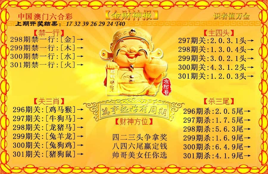 300期:财神出品 【二肖4码】庄家是你的摇钱树